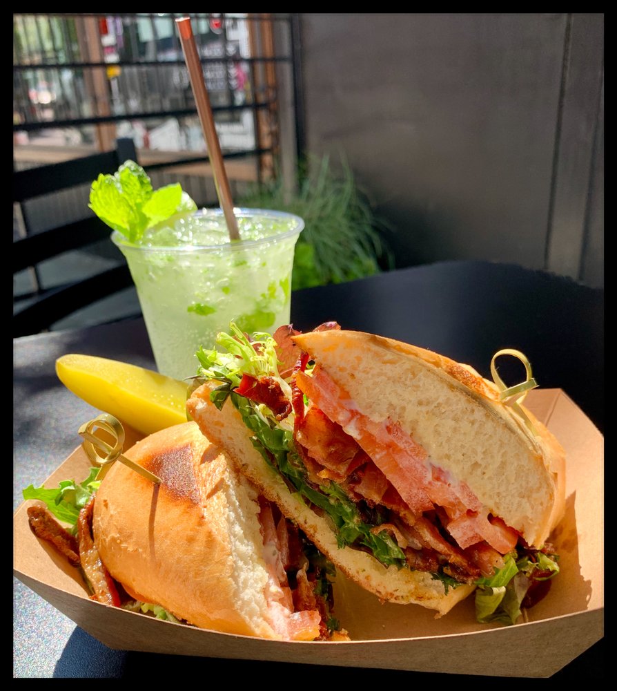 Crispy julienne cut bacon, mixed greens, tomato and house-made lemon herb aioli on a toasted kaiser bun. Comes with your choice of a side.